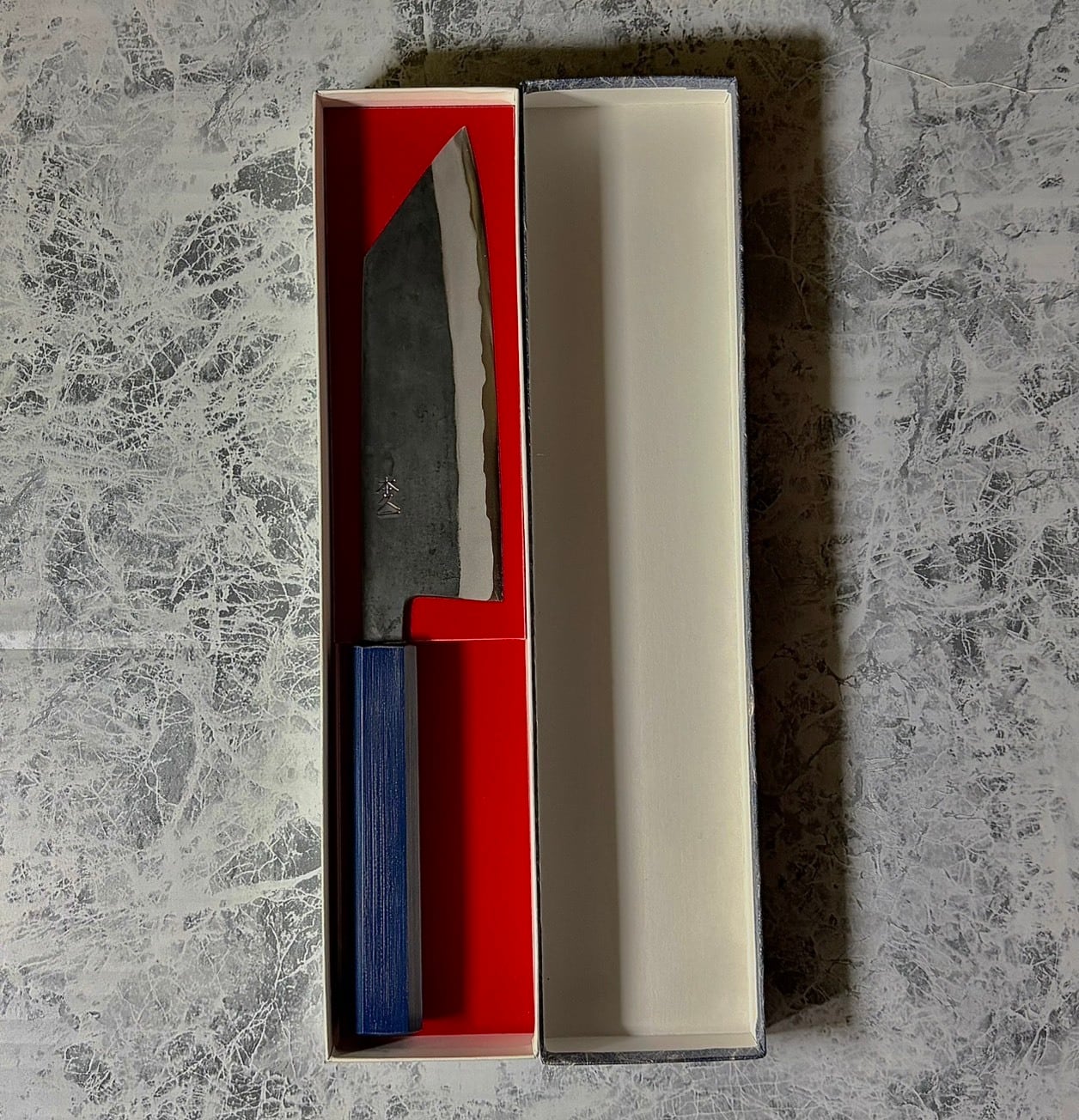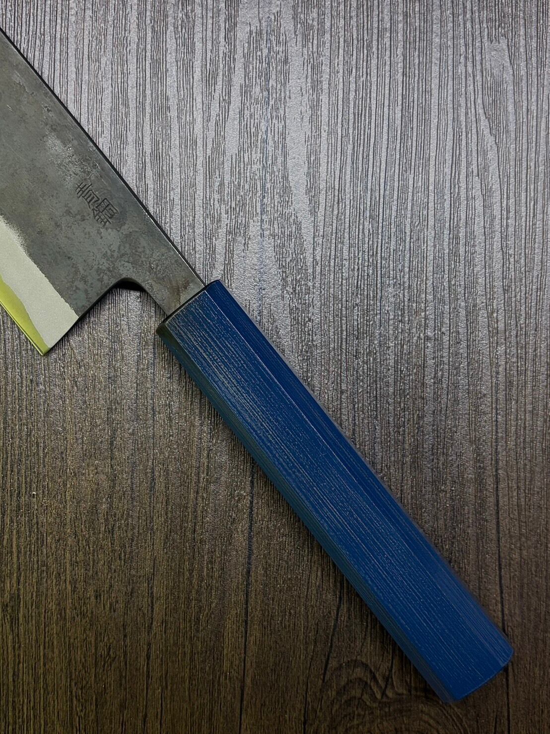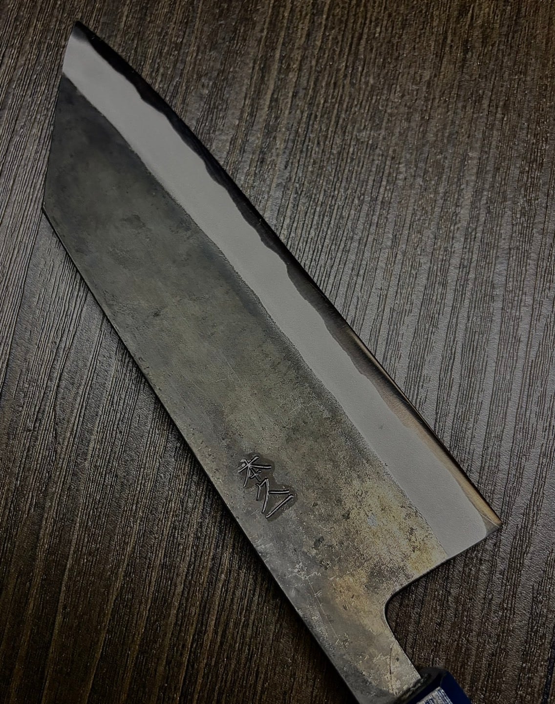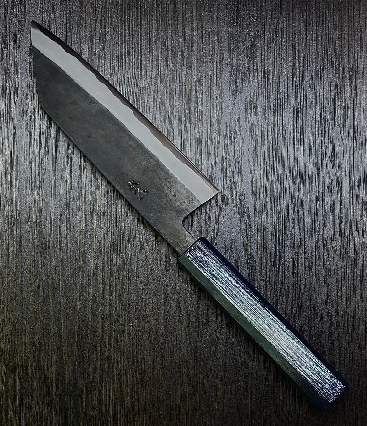 This bunka knife is handcrafted using Aogami (Blue Steel) #2 as the core, clad with stainless steel to achieve an ideal balance between exceptional sharpness and ease of maintenance. It delivers the refined cutting performance of traditional Japanese carbon steel, while offering improved corrosion resistance for everyday use.