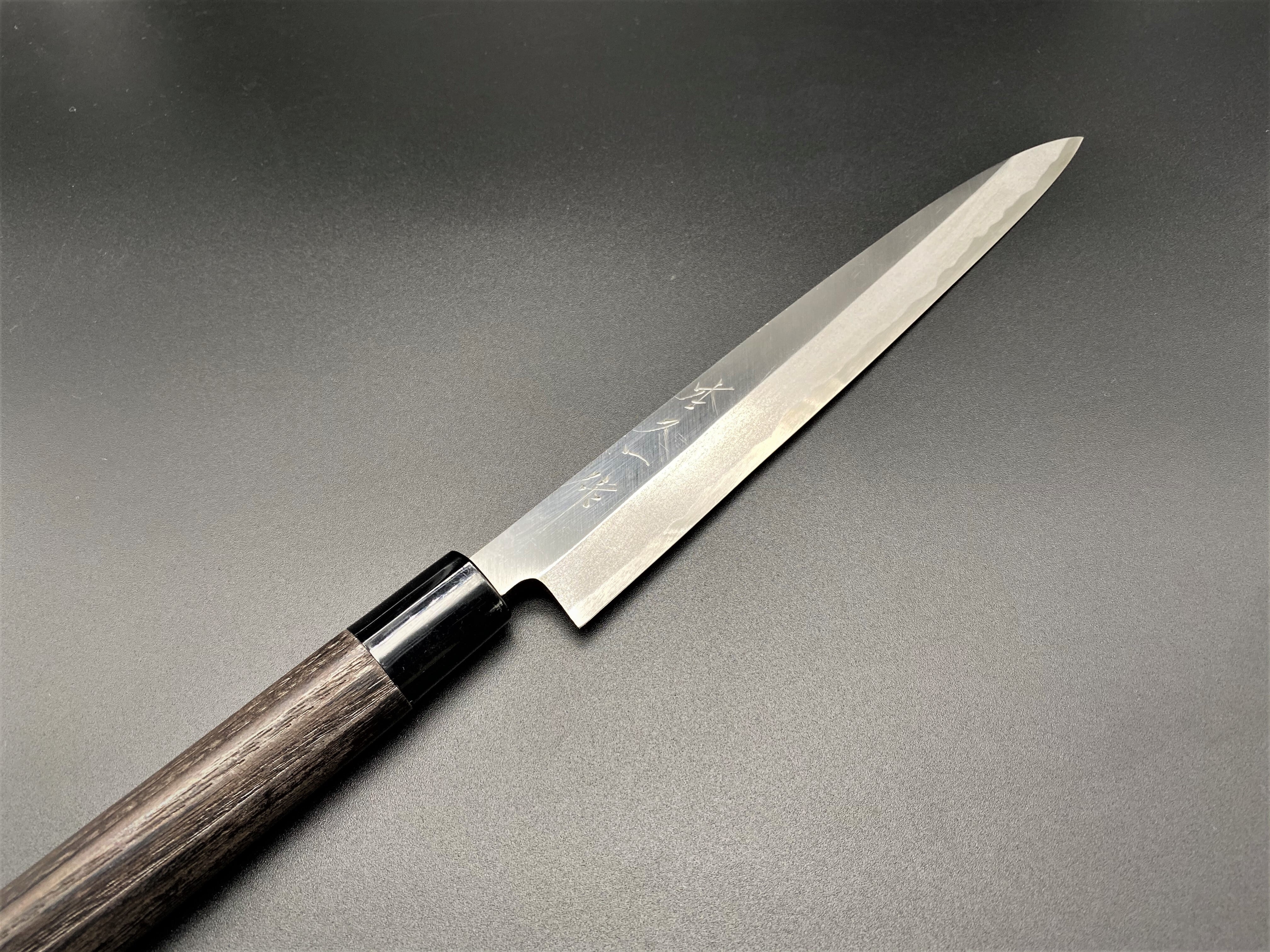 また、安来青紙鋼を使用した片刃柳刃包丁で、この価格は製造直売ならではの価格と思いますで、是非、お使いになってみてください。